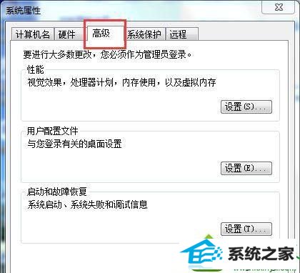 3、弹出系统属性窗口,在切换到高级选项卡;