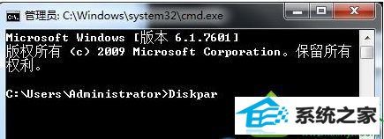 2、在命令提示符窗口下输入diskpart命令,输入diskpart后,接着输入select partition 1命令然后再回车,输入active命令即可。