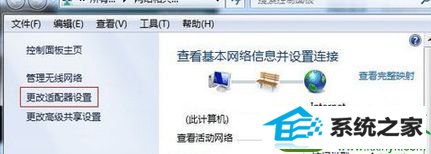 2、在打开的网络和共享中心窗体里面的左侧,点击“更改适配器设置”;