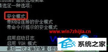 1、重启计算机,不停的按“F8”,在启动方式中选择“安全模式”;
