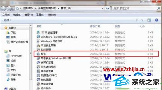 3.然后在管理工具窗口中打开“服务”进入下一步操作;