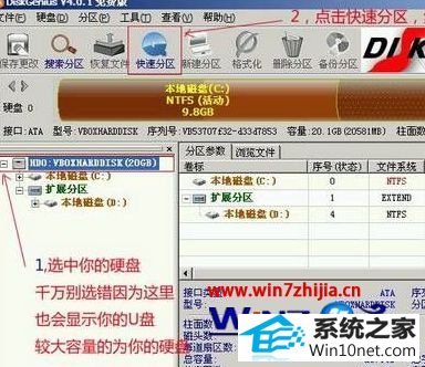 6、在左侧选中“Hd0”,然后点击“快速分区”;