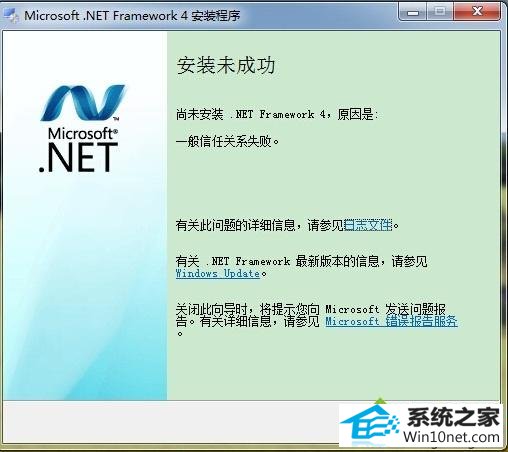 今天小编分享一下win10系统安装.net Framework4未成功提示一般信任关系失败问题的处理方法,在操作win10电脑的过程中常常不知道怎么去解决win10系统安装.net Framework4未成功提示一般信任关系失败的问题,有什么好的方法去处理win10系统安装.net Framework4未成功提示一般信任关系失败呢?今天本站小编教您怎么处理此问题,其实只需要1、进入系统后按下“win + R”快捷键打开运行,输入“gpedit.msc”并点击确定打开组策略; 2、在本地组策略编辑器依次展开到“计算机配置--管理模板--windows 组件--windows installer”,任何在右侧窗口找到并双击打开“允许用户对安装进行控制”策略;就可以完美解决了。下面就由小编给你们具体详解win10系统安装.net Framework4未成功提示一般信任关系失败的图文步骤: