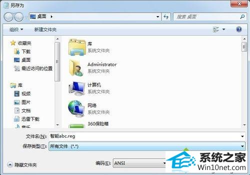 4、将新建文本文档另存为【ABC.REG】保存到桌面;